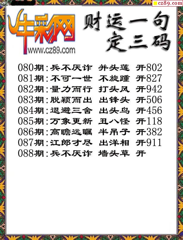 首页 > 福彩3D图谜 > 福彩3D2026088期财运一句定三码字图谜