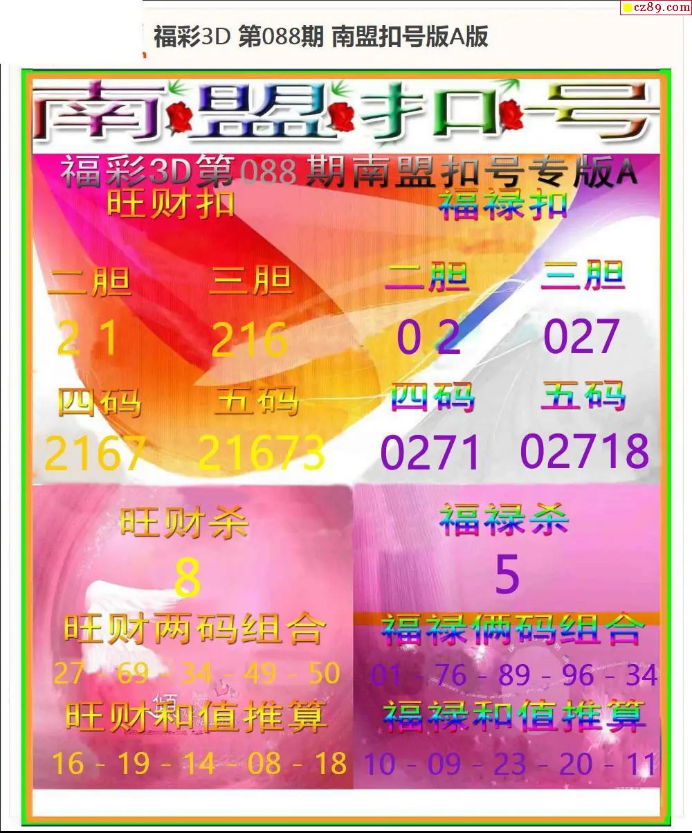 > 福彩3D2026088期南盟麦穗AB版+南盟扣号AB版