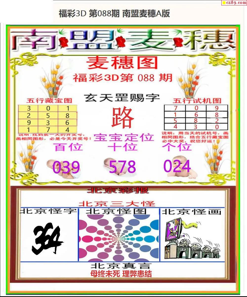 福彩3D2026088期南盟麦穗AB版+南盟扣号AB版-3d开机号-3d开机号今天_3D开机号结果查询_千禧3d福彩开机号和试机-福彩3D