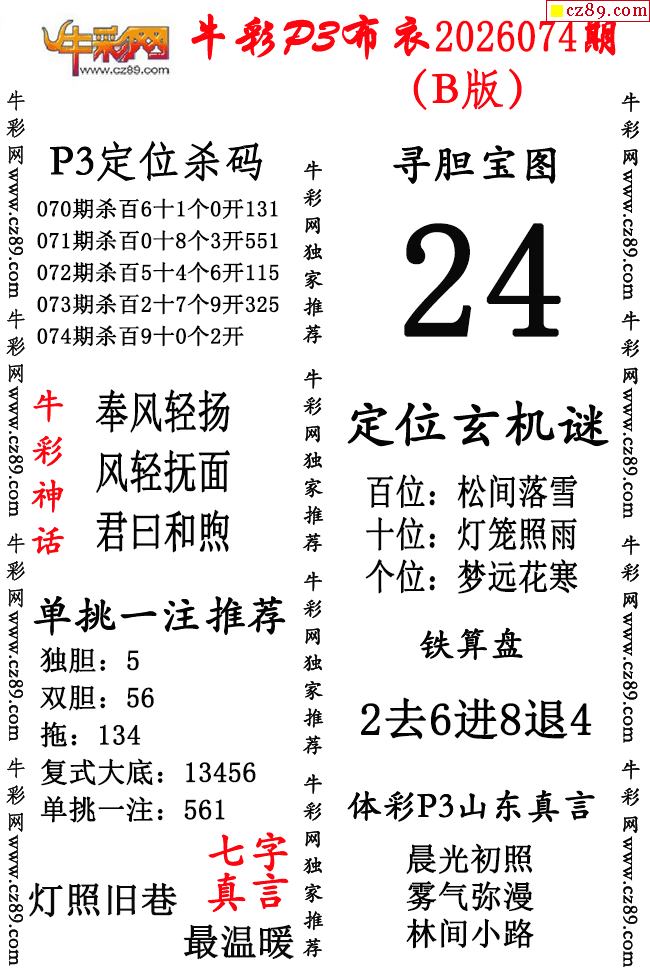 牛彩P3布衣26年074期AB版图谜(精华版)