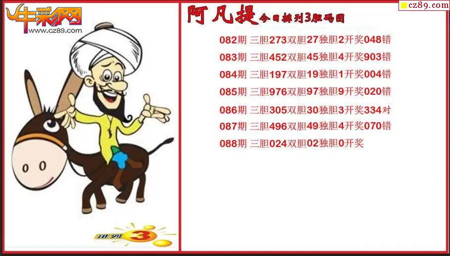首页 > 排列3图谜 > 2026088期P3阿凡提胆码图