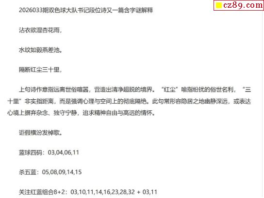> 26年福彩双色球033期 大队书记段位诗另一篇