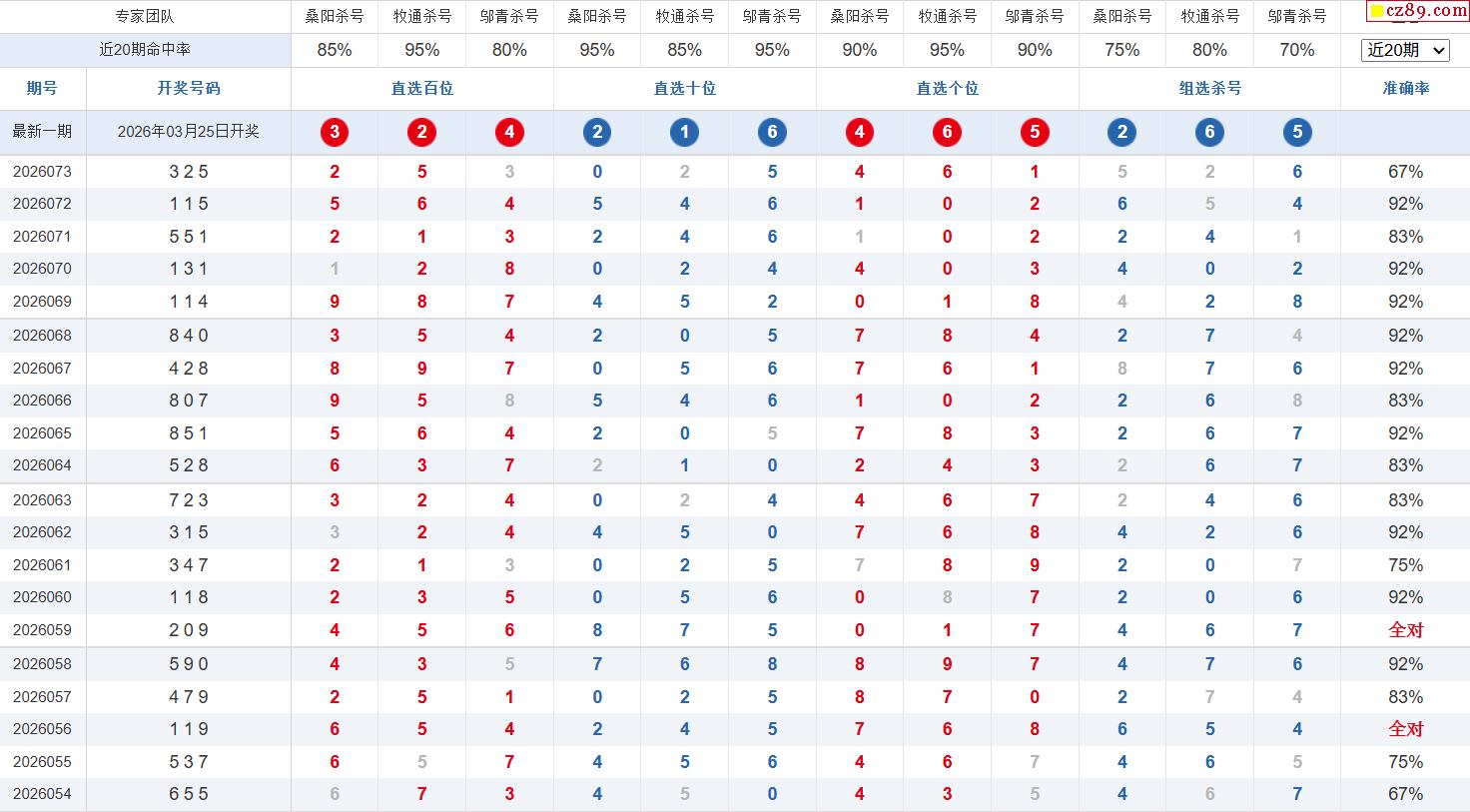 26年074期彩宝贝专家体彩P3杀号定码图表