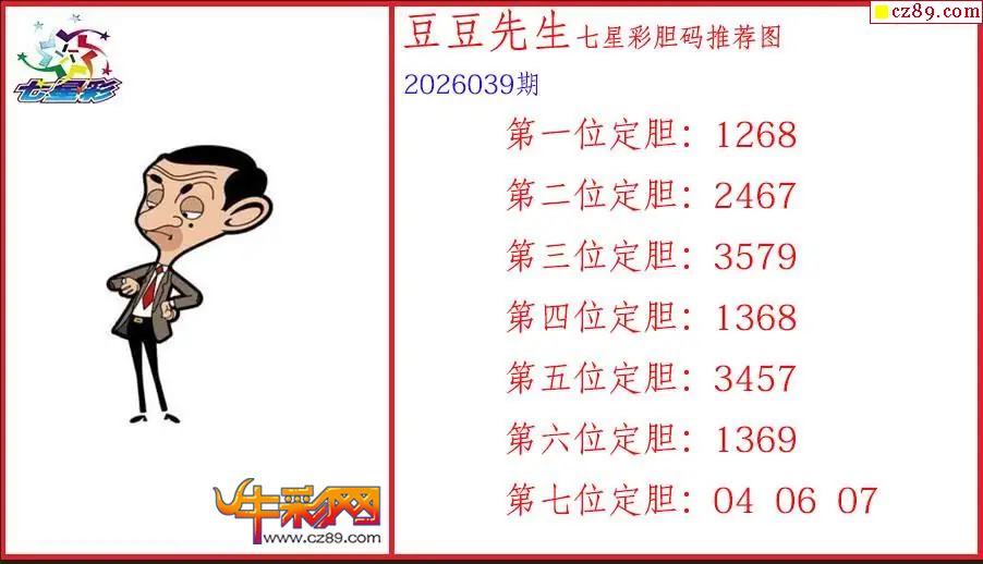 豆豆先生26039期七星彩三胆推荐图