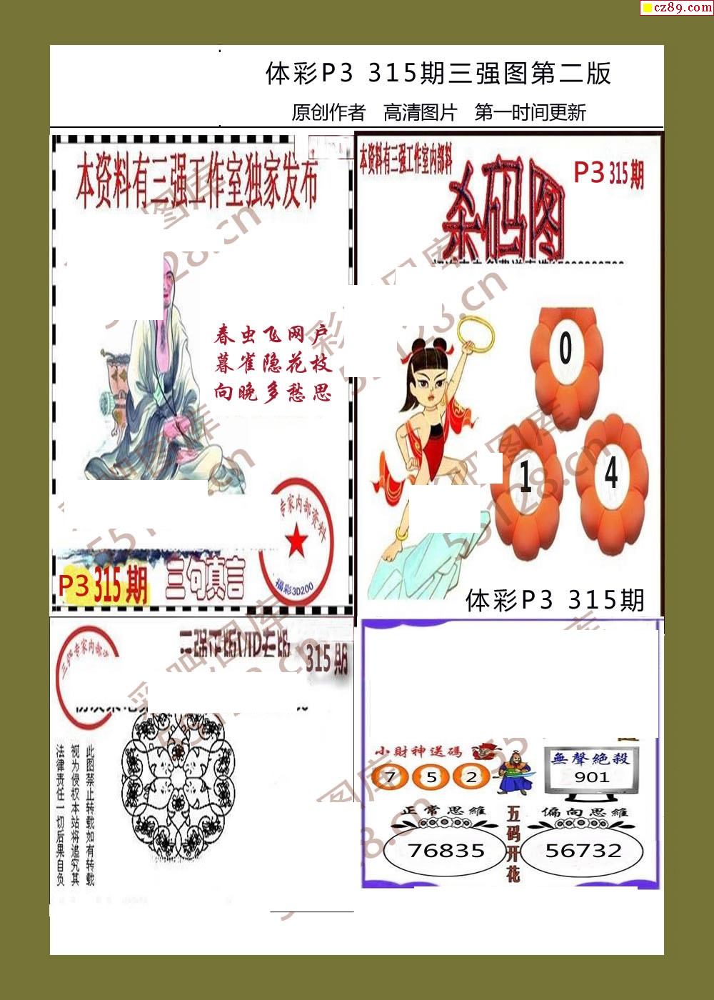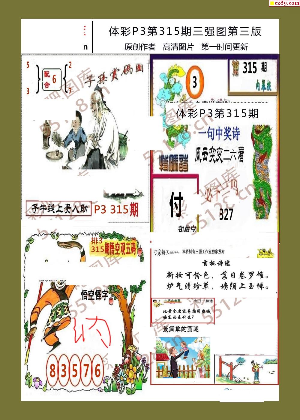 三强图系列315期体彩p3图谜