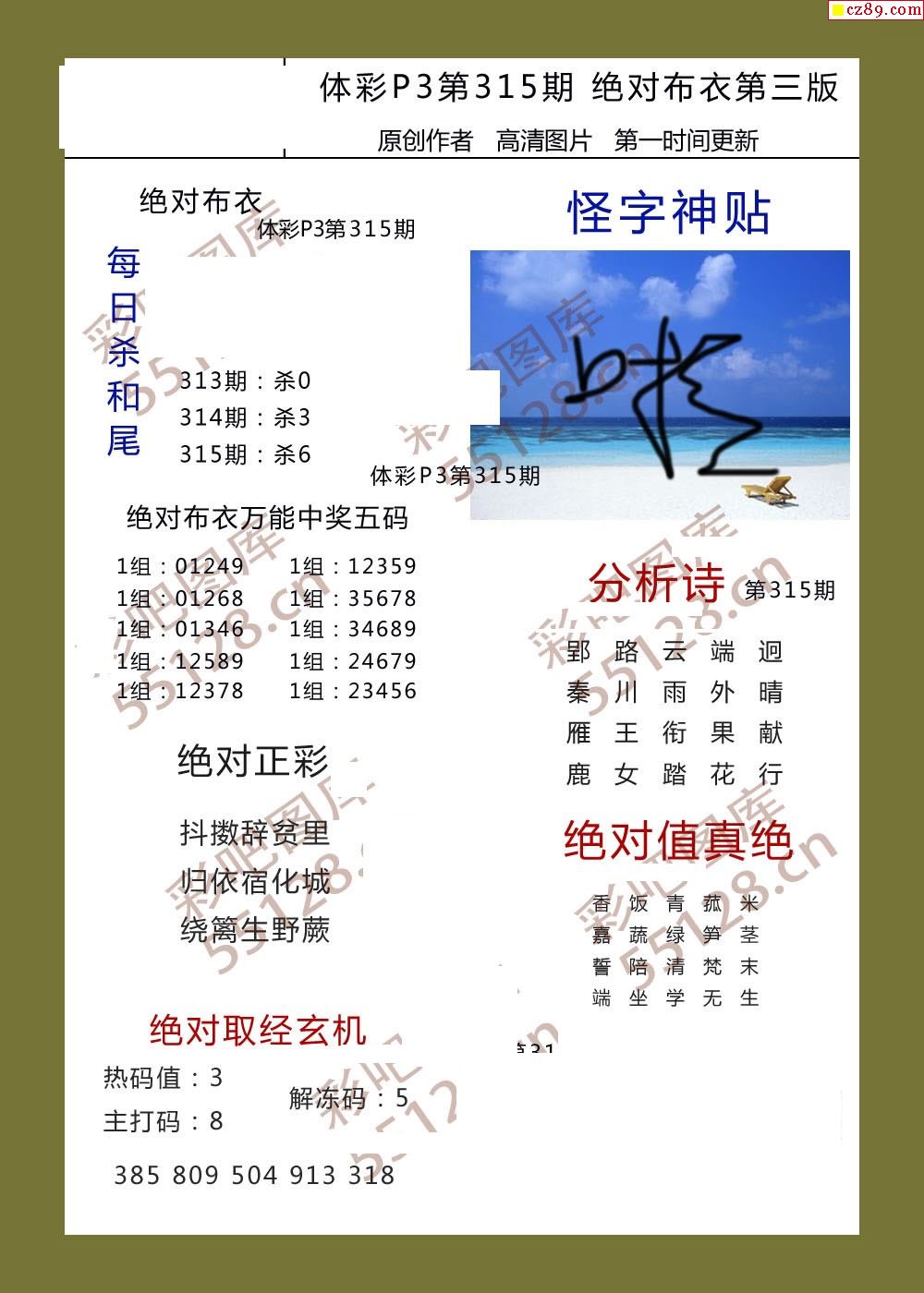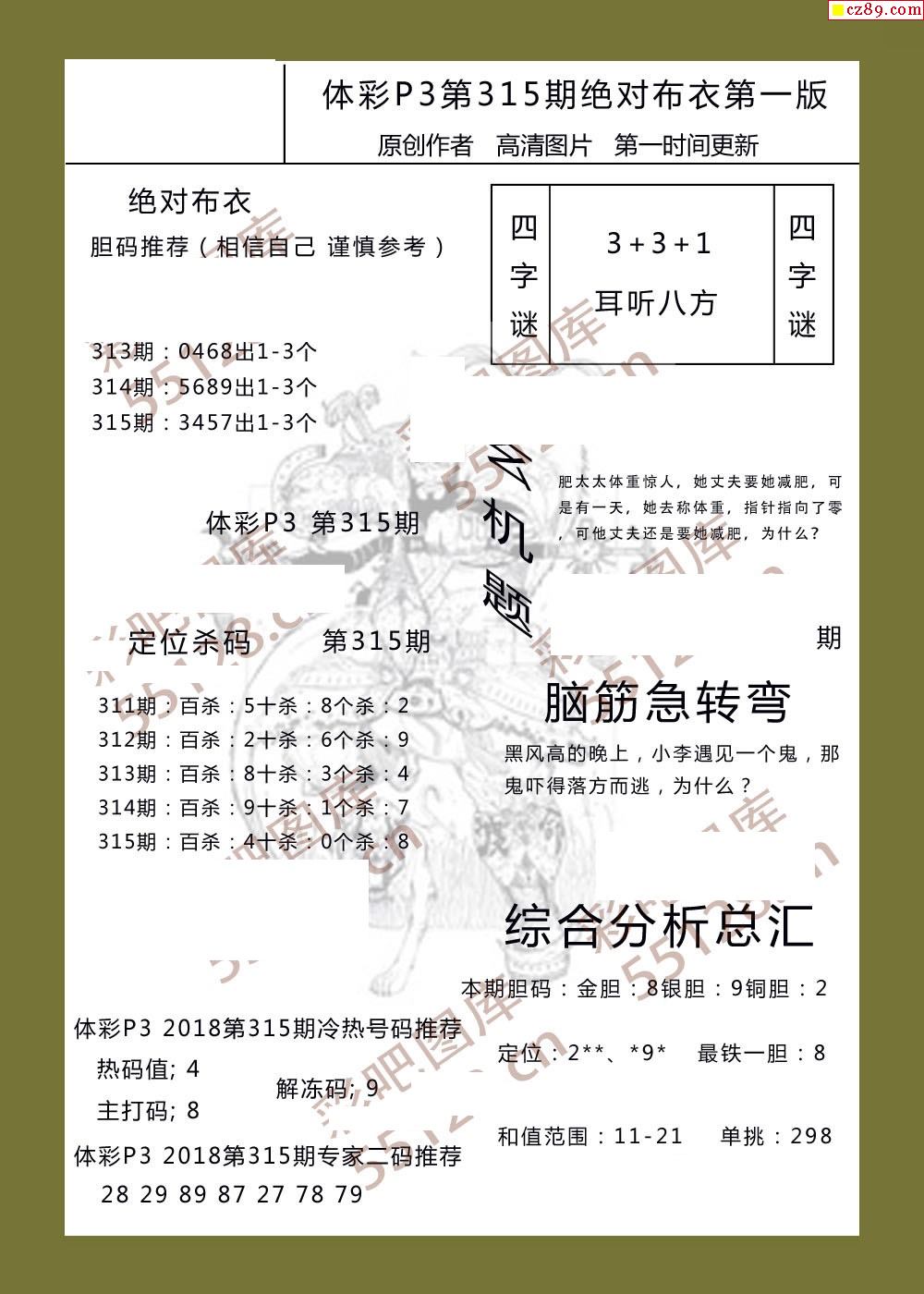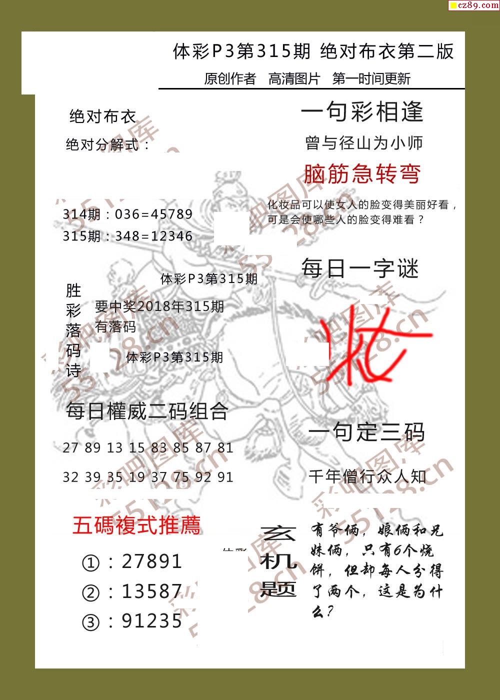 绝对布衣315期体彩p3图谜