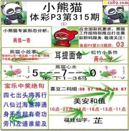 首页 > 排列3图谜 > 小熊猫2025315期体彩P3图谜